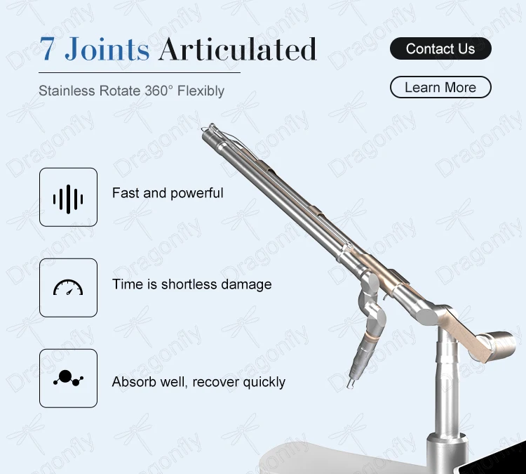 The Picosecond laser instrument is equipped with a 7-joint light guide arm imported from South Korea, ensuring a flexible and efficient treatment experience. This light guide arm design allows the laser to be accurately irradiated to various angles and parts, making it easy to treat hard-to-reach areas. Its flexibility not only improves the convenience of operation, but also