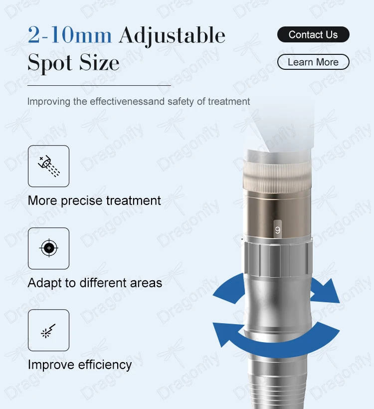 Picosecond laser instruments are equipped with adjustable spot sizes ranging from 2mm to 10mm to meet different treatment needs.